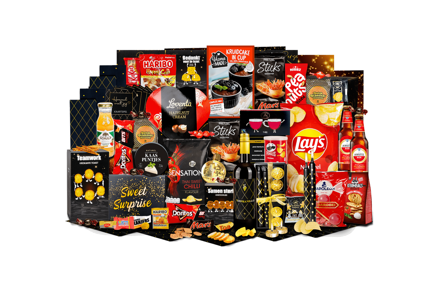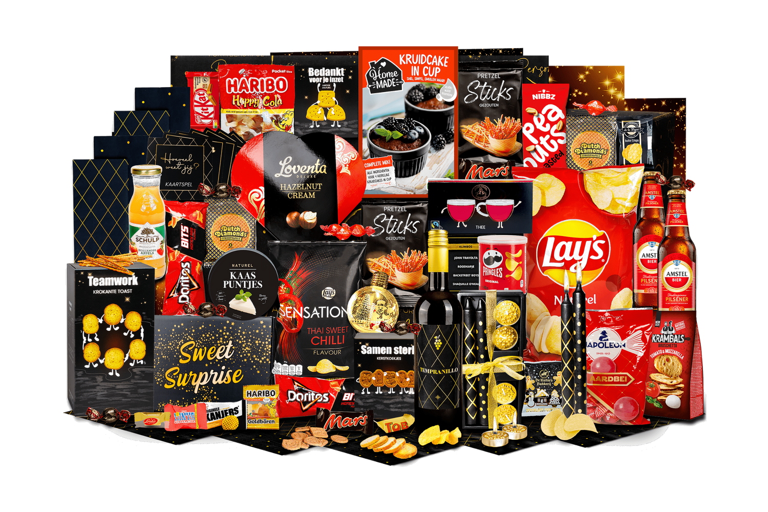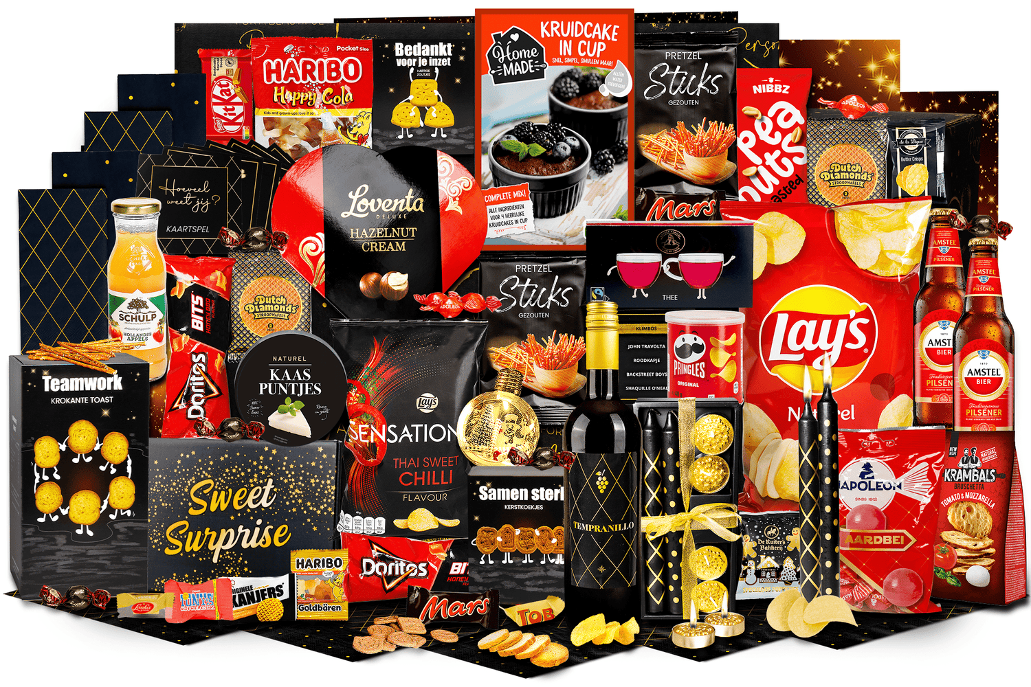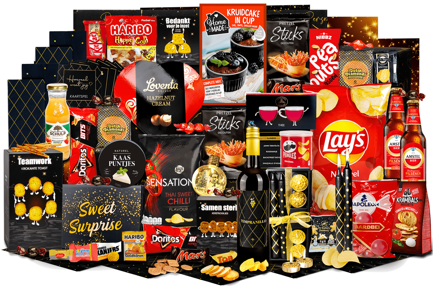 Sfeervolle merken. Een zorgvuldig samengestelde giftbox vol hartige en zoete lekkernijen, dranken en sfeervolle accessoires. Perfect als kerstgeschenk, relatiegeschenk of voor een gezellige borrel.