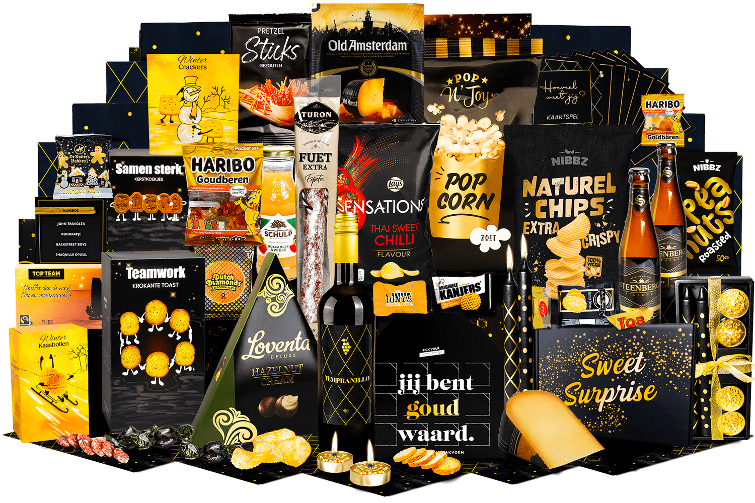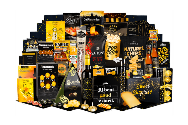 Waardering. Een stijlvolle geschenkbox met luxe hartige en zoete lekkernijen. Perfect als blijk van waardering en direct klaar om te geven.