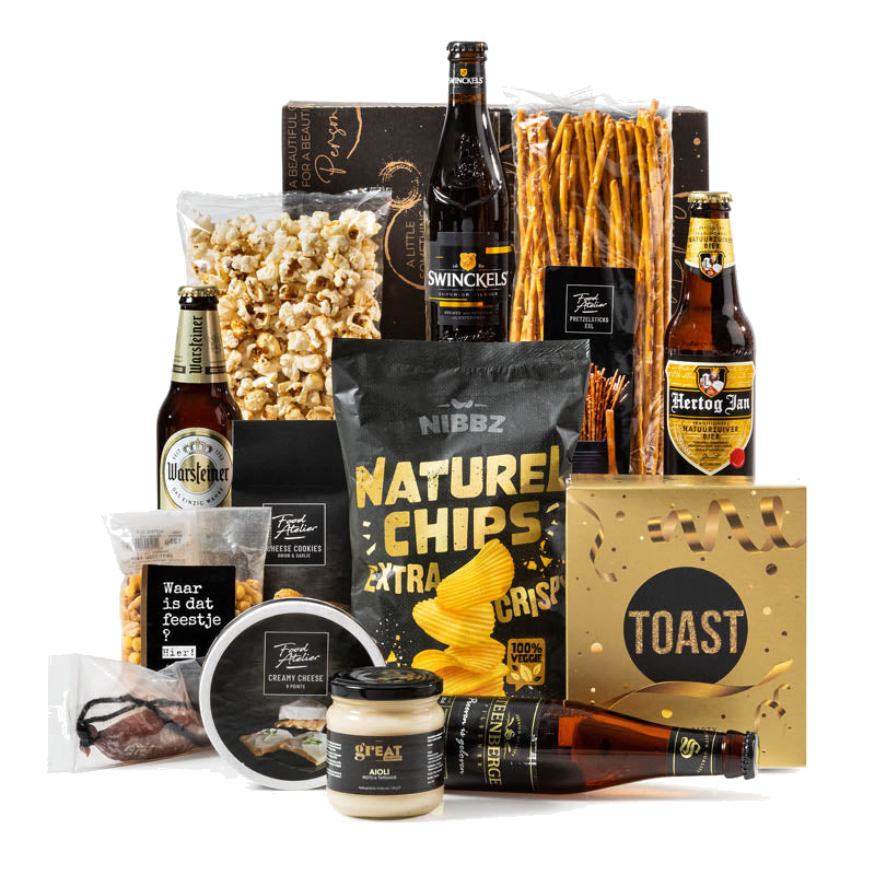 Laat je verrassen door verschillende bierstijlen, van frisse pilseners tot volmondige klassiekers, elk met een eigen smaakprofiel. Combineer ze met krokante chips, smaakvolle kazen, ambachtelijke vleeswaren en knapperige crackers. Of je nu een gezellige avond thuis organiseert of iets speciaals wilt geven: dit pakket staat garant voor gezelligheid en smaakbeleving.