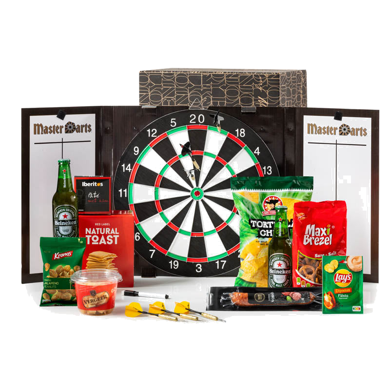 Waarom dit pakket kiezen? Het combineert kwaliteit en gezelligheid: een betrouwbaar dartbord en pijlen voor sportief plezier en een selectie aan populaire borrelproducten voor ieder wat wils. Snel te bestellen en klaar om uit te pakken — perfect voor wie wil genieten zonder gedoe.