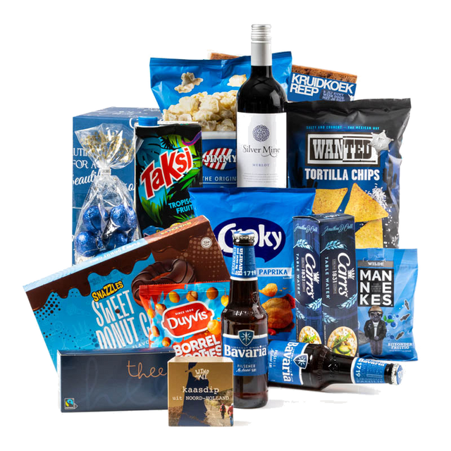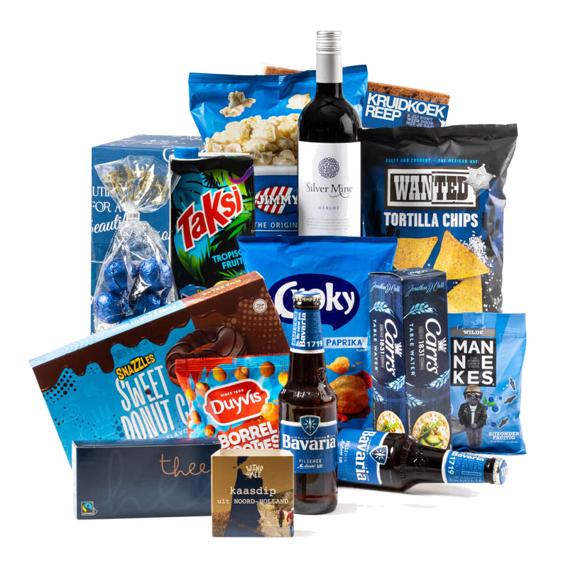 Vier de feestdagen met stijl: het Blue Celebration Kerstpakket is een smaakvolle, blauw getinte selectie vol verrassingen voor het hele gezin. Met een feestelijke uitstraling en een uitgebalanceerde mix van snacks, dranken en zoete lekkernijen is dit pakket perfect voor een ontspannen borrel, een gezellig avondje thuis of als opvallend cadeau voor vrienden en familie. Luxe, feestelijk en vol variatie — dit pakket maakt elk samenzijn bijzonder.
