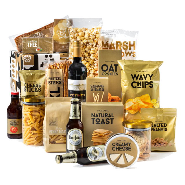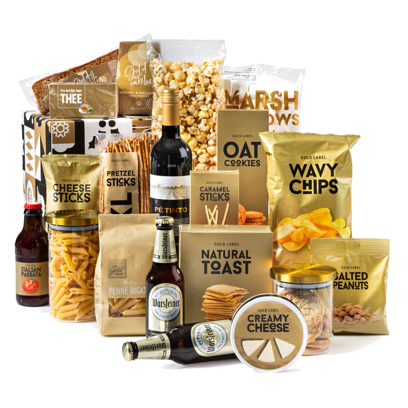 De Gouden Kerstbox straalt kwaliteit en aandacht uit. Elk item is zorgvuldig gekozen om samen een evenwichtig en feestelijk geheel te vormen: van knapperige chips en pretzels tot romige truffels en verwarmende thee. De combinatie van producten nodigt uit tot delen en genieten en past perfect bij winterse bijeenkomsten en zakelijke waardering.