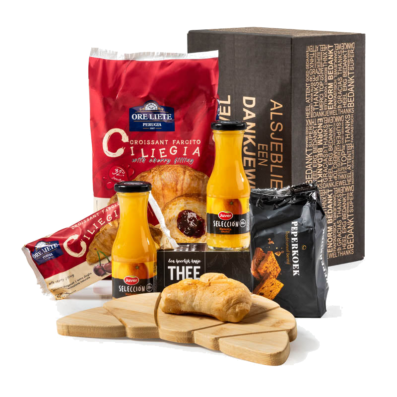 Maak de feestdagen extra bijzonder met dit stijlvolle kerst-ontbijtpakket: een elegant en smaakvol gebaar voor collega’s, relaties of jezelf. Dit zorgvuldig samengestelde cadeau zorgt voor een warm begin van de dag en straalt kwaliteit en klasse uit. De speciale houten serveerplank in croissantvorm geeft meteen sfeer aan het ontbijt, terwijl het assortiment van verse en ambachtelijke producten uitnodigt om te genieten. Verpakt in een fraaie geschenkdoos en beschikbaar zolang de voorraad strekt.