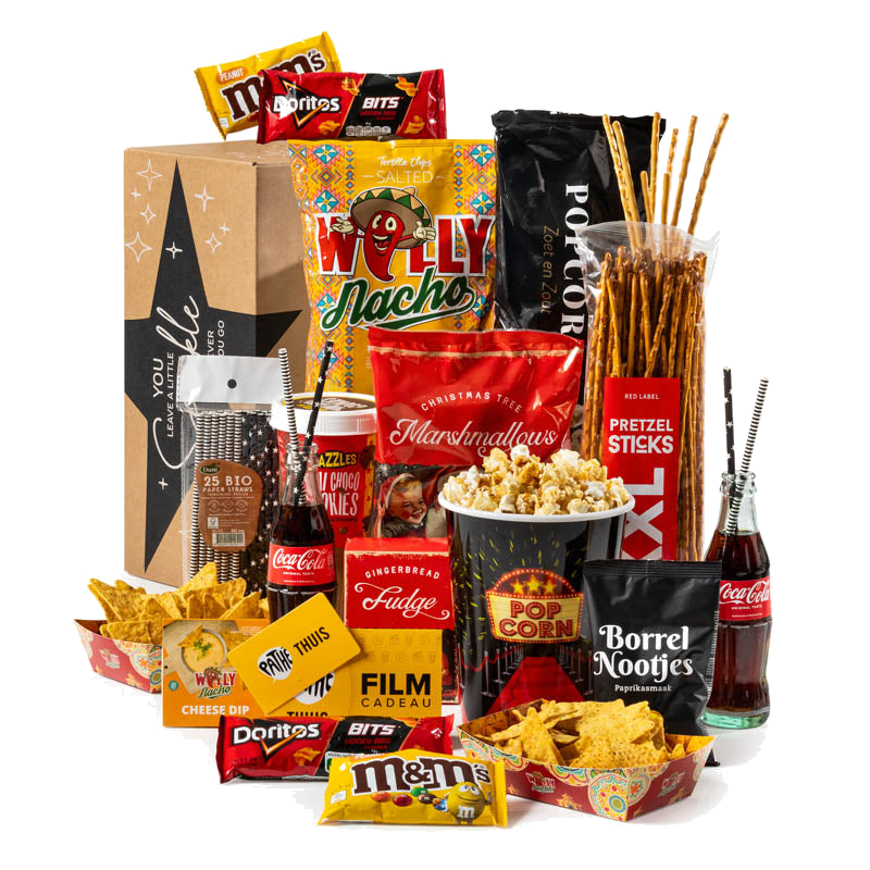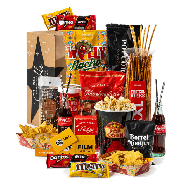 Breng de magie van de bioscoop naar je woonkamer met dit feestelijke kerstpakket: perfect voor een knusse filmavond met je partner, vrienden of het hele gezin. Dit pakket zit boordevol cinéma‑favorieten en lekkere snacks, zodat jullie samen ontspannen, genieten en herinneringen maken. Of je nu een romantische feelgood kiest of een spannende thriller, met deze selectie heb je alles binnen handbereik voor een zorgeloze avond op de bank.