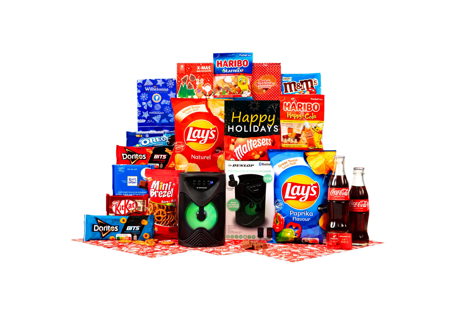 De combinatie van luxe chocolade, bekende snoepjes, knapperige chips en een praktische draadloze speaker zorgt voor een verrassend én bruikbaar cadeau. Of het nu onder de kerstboom ligt of bij een zakelijke gelegenheid wordt uitgedeeld: dit pakket straalt aandacht en kwaliteit uit zonder poespas. Bestel snel en laat bezorgen in een feestelijke geschenkdoos, klaar om te ontvangen en te genieten.