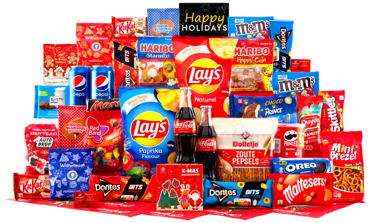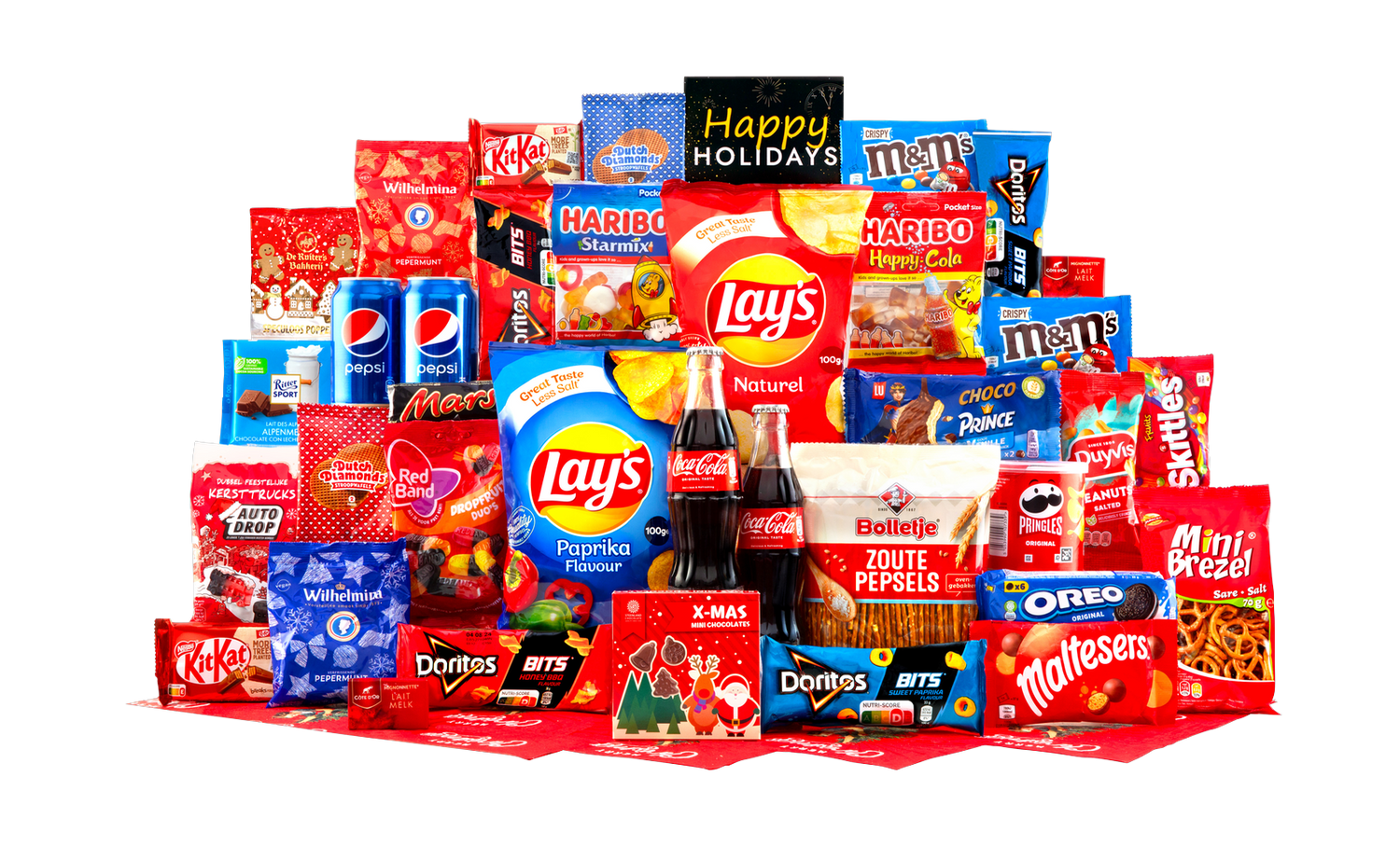 - Topmerken zoals Coca-Cola, Pepsi, Lay’s, Pringles, Côte d'Or en Oreo