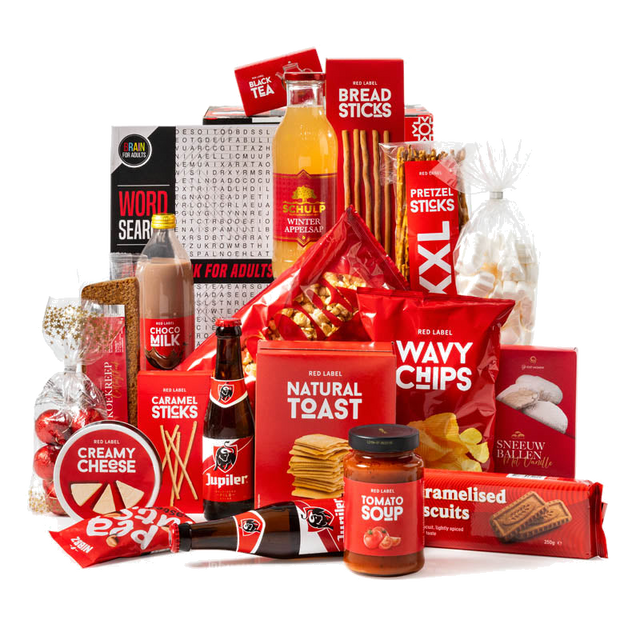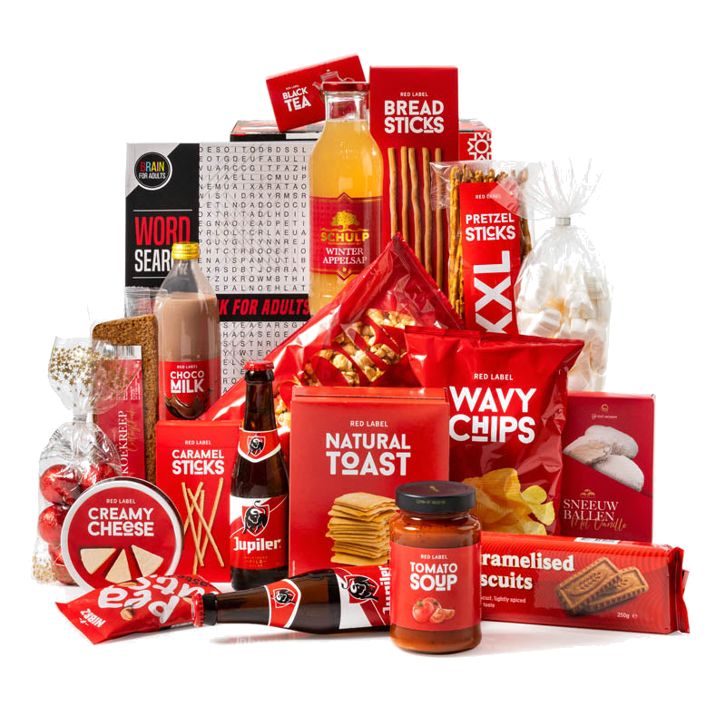 Vier de feestdagen in stijl met dit vrolijke, rood getinte kerstpakket boordevol lekkers en comfort. Perfect voor een warme winteravond met familie of vrienden: opvallend van kleur, rijk aan smaak en ideaal om samen van te genieten. Of u nu gezellig samen puzzelt, een film kijkt of na het diner nageniet met iets warms, dit pakket brengt sfeer en smaak bij elkaar.