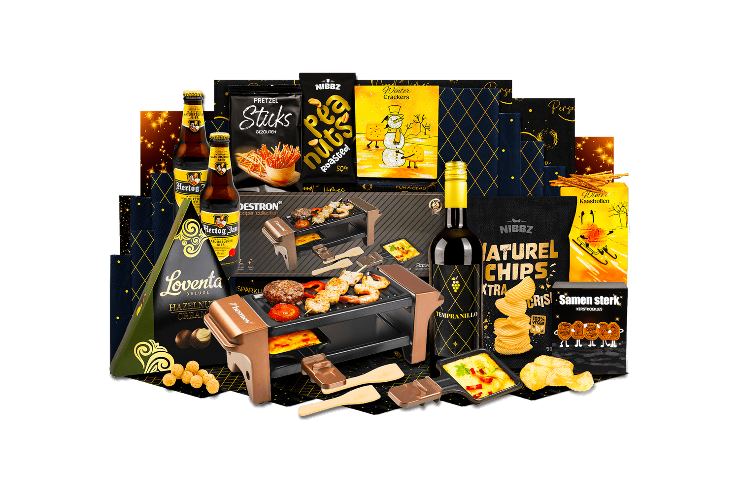 Leuke gourmetset. Perfect voor een gezellige avond met z'n tweeën. Compleet en kant-en-klaar verpakt in een feestelijke doos.