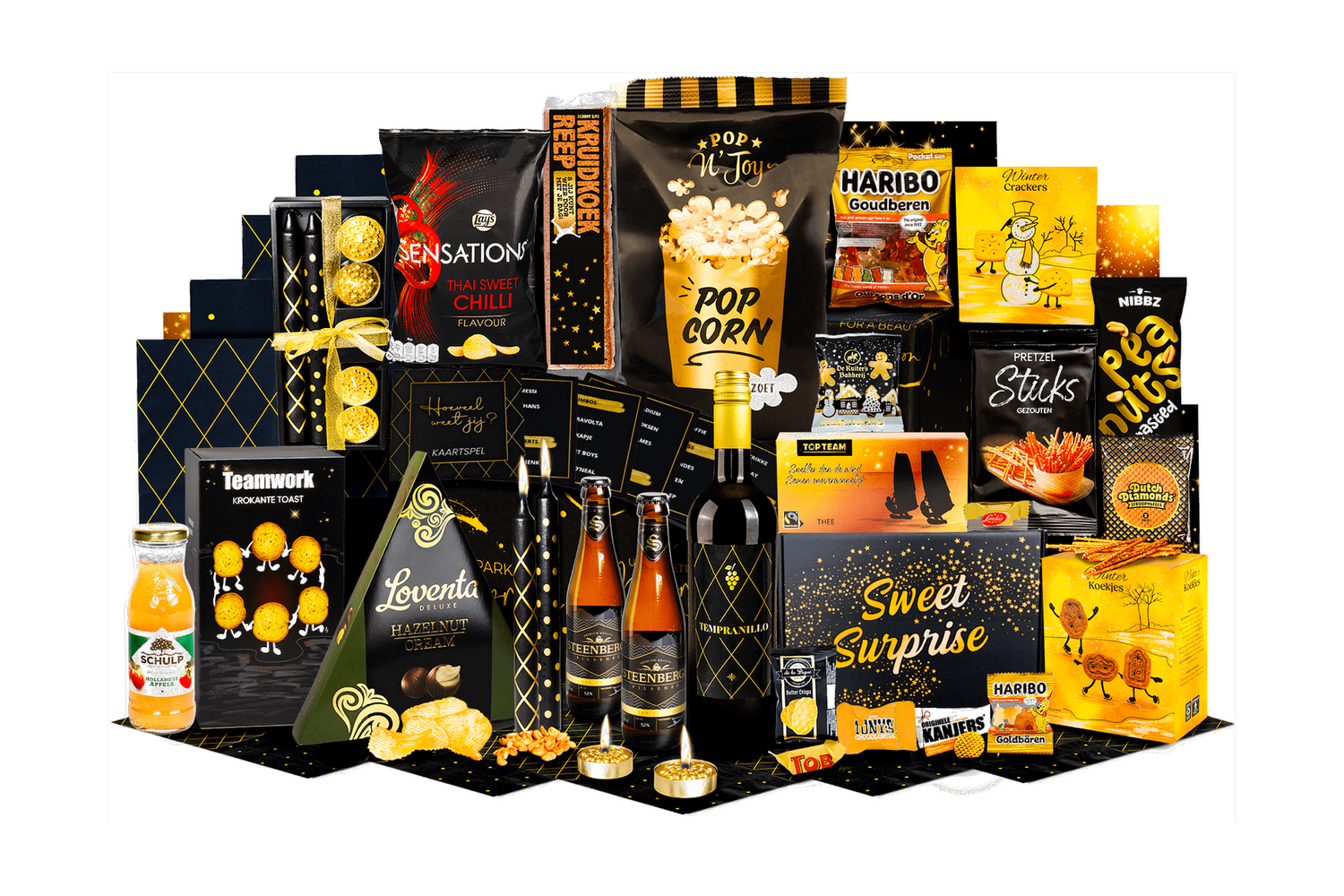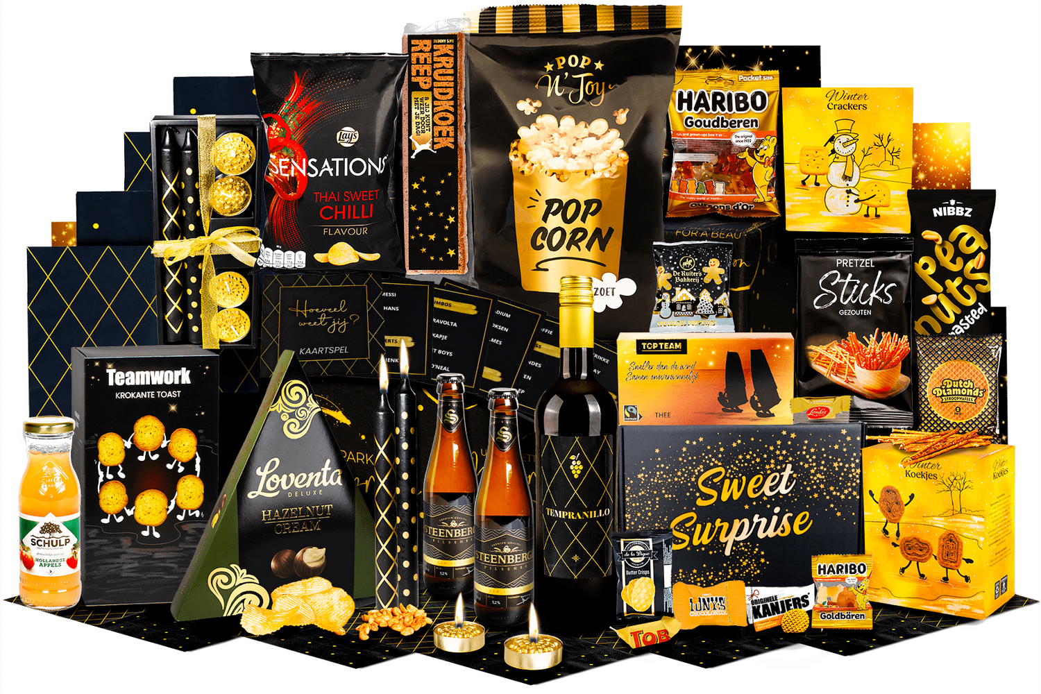 Mooi vol is een feestelijke giftbox boordevol hartige en zoete lekkernijen. Klaar om direct te geven in een stijlvolle verpakking met strik. Ideaal als attent cadeau voor familie, vrienden of zakelijke relaties.