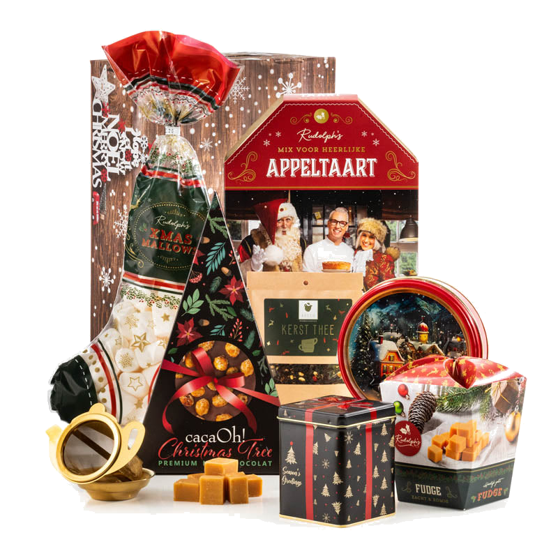 Breng warmte en huiselijkheid in de winter met dit gezellige kerstpakket: een perfecte mix van zoete lekkernijen en smaakvolle thee voor knusse momenten samen. Of je nu op zoek bent naar een origineel cadeau voor de thuisbakker, een verrassing voor een theeliefhebber of een feestelijk pakket voor vrienden en familie, dit pakket zet meteen de juiste sfeer neer. De geuren van versgebakken appeltaart en romige fudge, gecombineerd met elegante theebenodigdheden, maken dit geschenk onvergetelijk.