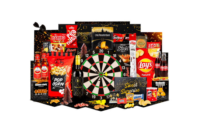 Spelen en uitpakken. Een complete, feestelijke box met spel en lekkernijen voor gezellige avonden en verrassingen. Handig verpakt en direct klaar om cadeau te geven of samen van te genieten.