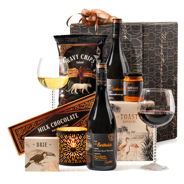 De inhoud is met aandacht gekozen om samen te genieten: de diepe, fruitige tonen van de rode wijn passen perfect bij rijke kazen en hartige snacks, terwijl de frisse, zachte aroma’s van de witte wijn uitstekend combineren met romige en zoete smaken. Het geheel wordt gepresenteerd in een mooie geschenkdoos, klaar om te geven zonder extra inpakken.