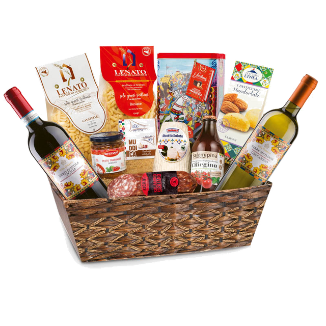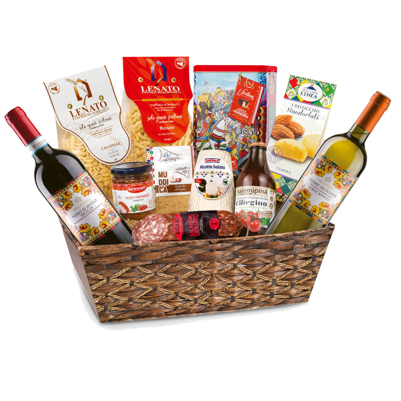 Verwen uzelf of iemand anders met een elegant samengesteld cadeaupakket vol authentieke delicatessen uit Sicilië. Dit stijlvolle geschenk, vormgegeven als een klassieke mand en verzorgd verpakt in een fraai vormgegeven geschenkdoos, brengt de zon, geur en smaak van het zuiden van Italië rechtstreeks naar uw tafel. Perfect als relatiegeschenk, verjaardagscadeau of om een bijzonder moment extra speciaal te maken.