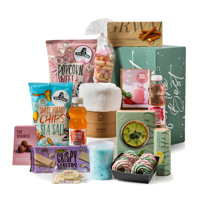 De inhoud is zorgvuldig geselecteerd om telkens iets anders te bieden: van crunchy vegan snacks en romige taartmix tot frisse zero sugar drankjes en kleurrijke meringues. Maak een verfrissende smoothie met de kweekset, probeer de Mojito kwarktaart bij de thee of ontspan onder de zachte fleece plaid met een stukje salted caramel of een chocolade truffel. Alles wordt geleverd in een bijpassende geschenkdoos, klaar om cadeau te geven.
